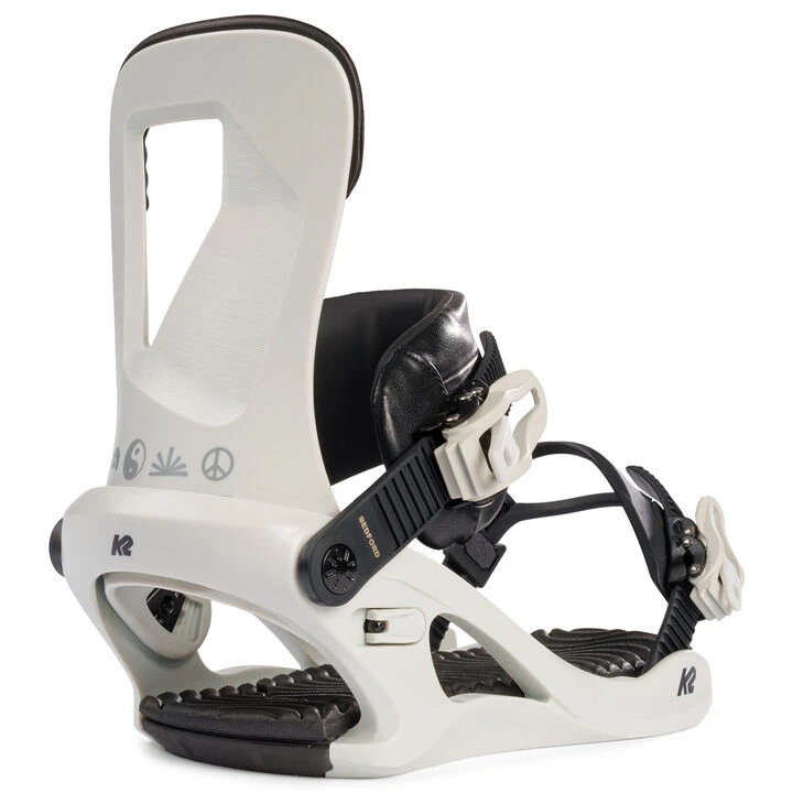 With the tech and components of a binding twice the cost, the K2® Women’s Bedford hits it out of the park on the all-mountain snowboard binding big three: Performance, Comfort, and Value! The durable frame of the Bedford is the female-specific Polycarbonate Flex A-Line™ Chassis, featuring a cushy EVA Seamless Footbed and a 3º inward cant to match your natural body position while strapped in. This puts the rider in a balanced position perfectly suited to anticipate terrain changes and lay down smooth turns, or tackle features in the terrain parks.