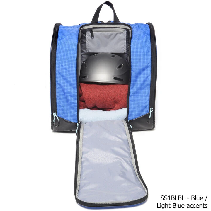 - Open Pack Design™: Designed around a large hybrid front pocket with full visibility into the center compartment for quick, organized packing of ski pants, tops, base layers, helmet, gloves and goggles. Interior pocket holds hand warmers, lip balm, lift pass and personal items