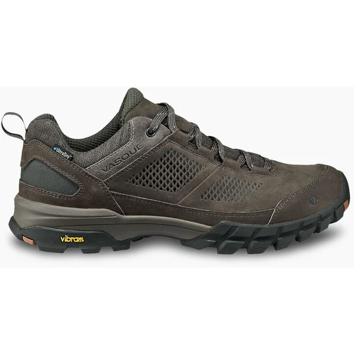 Vasque® Men’s Talus AT Low UltraDry™ is a versatile hiker loaded with features for on-the-move comfort. The shoe’s leather upper provides durability in a low-cut, lighter weight silhouette than its mid-height Talus AT counterpart. A Vasque UltraDry™ membrane creates a full waterproof seal to keep feet dry and comfortable in wet conditions. A Vibram® Mega Nuasi outsole ensures solid footing across varying terrain with aggressive traction and toe protection.